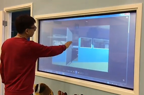 調(diào)光玻璃(霧化玻璃)具備良好的投影顯示性能,在玻璃霧化狀態(tài)下,配合高清投影機,背投出精彩清晰畫質(zhì),更可加入觸控設(shè)備,實現(xiàn)手指觸控屏幕操作。